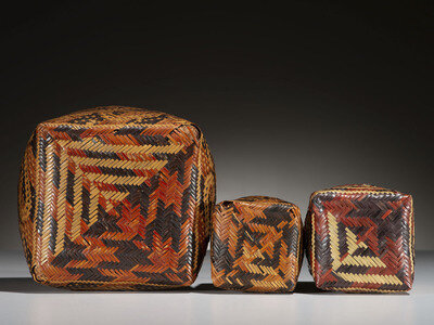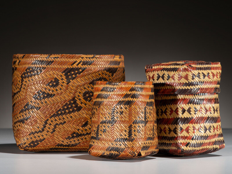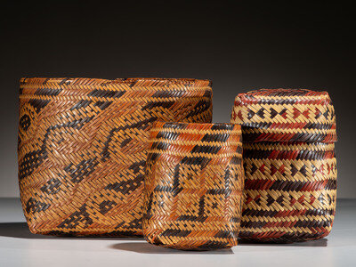 a larger basket by an unidentified artist, with the alligator motif, height 6-1/2 inches x width 6-1/2 inches