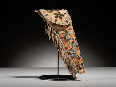 thread and sinew-sewn and made to hold a Navy Colt or similar pistol; delicate scrolling beadwork