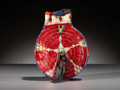 Sioux Quilled Hide Canteen-Shaped Pouch