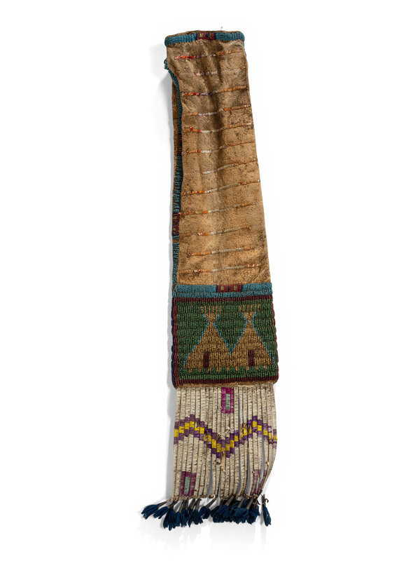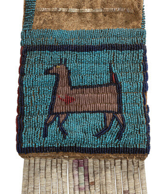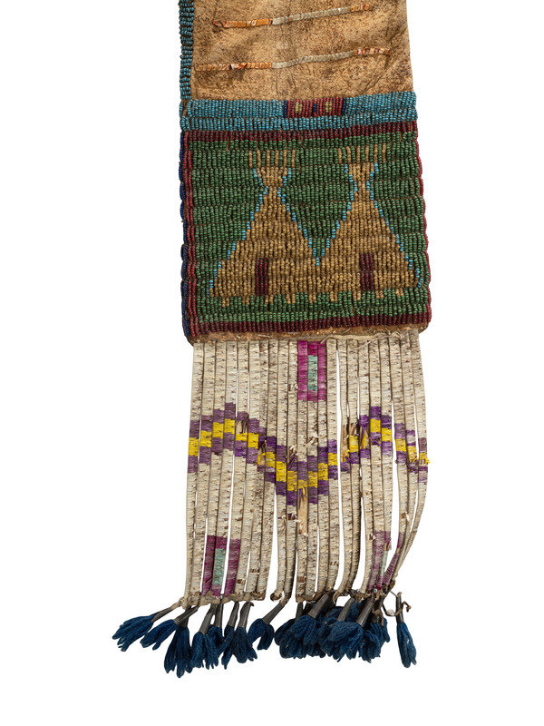 Sioux Beaded and Quilled Hide Tobacco Bag, with Heartline Deer and Tipis