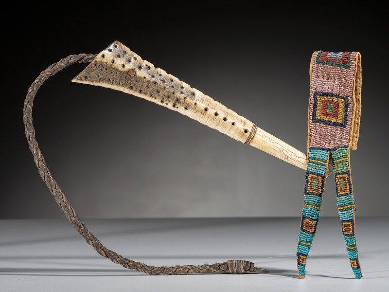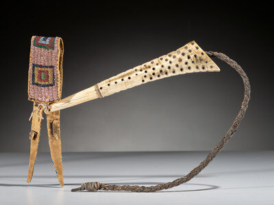 Northern Plains Elk Antler Quirt, with Beaded Buffalo Hide Wrist Strap