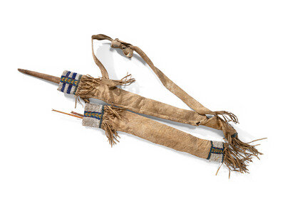 Northern Plains Boy's Beaded Quiver and Bow Case, with Bow and Arrows