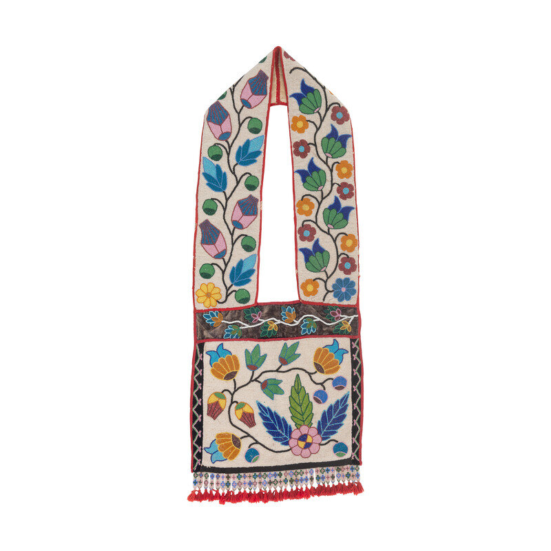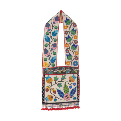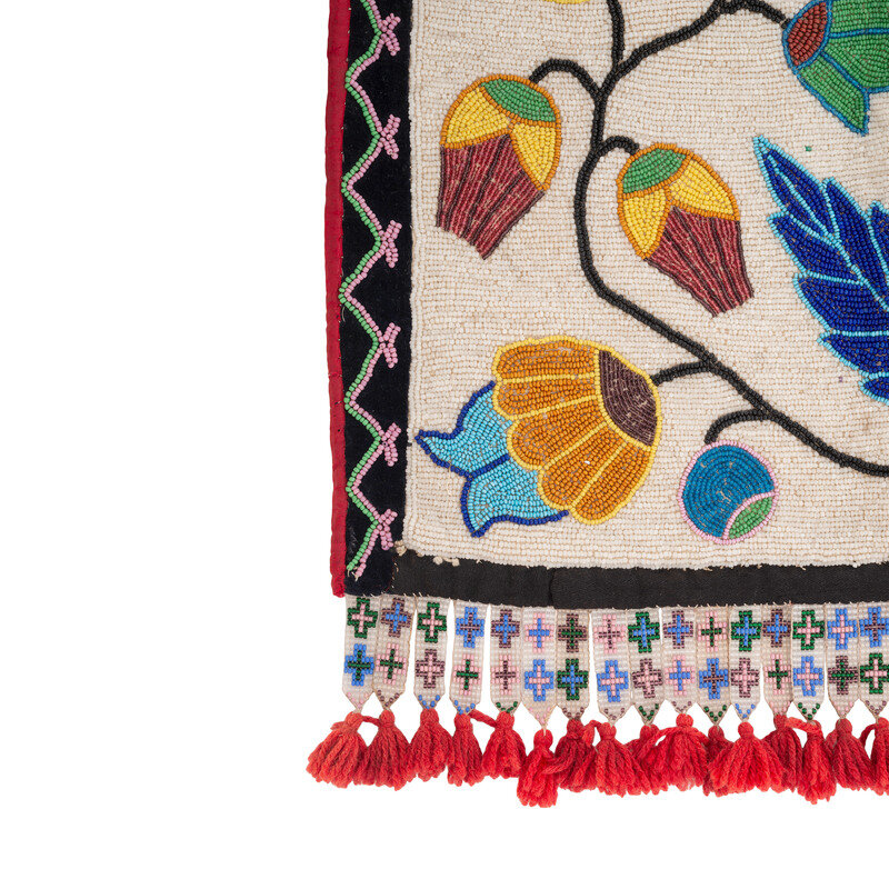 beaded with a bold floral design using an assortment of colors; muslin backing