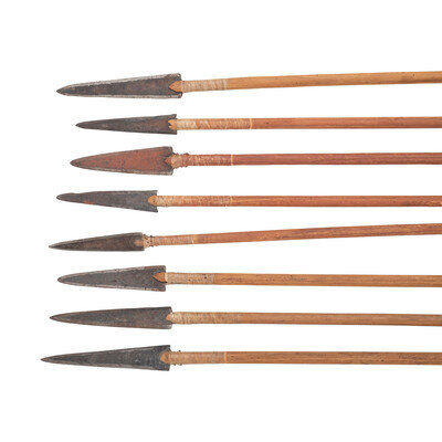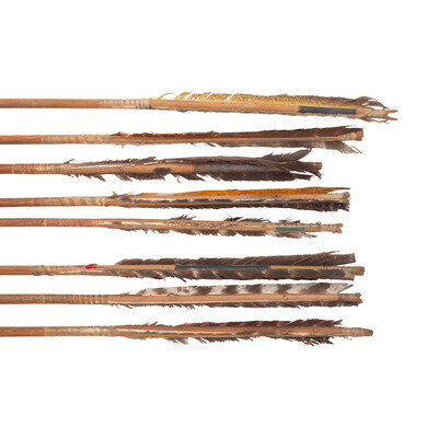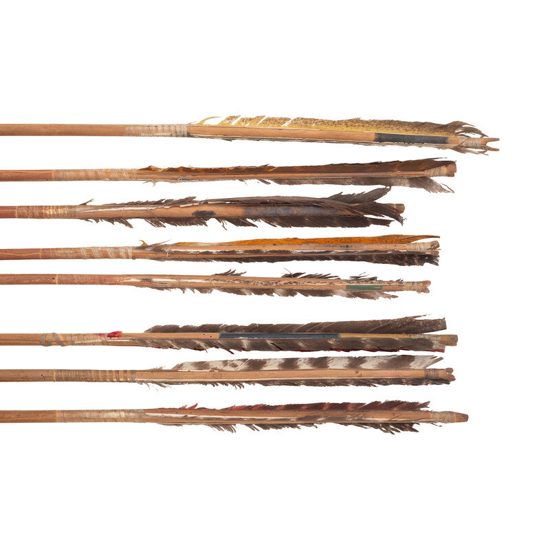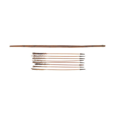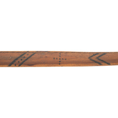 bow with a sinew string and decorations painted on one side, length 45 inches