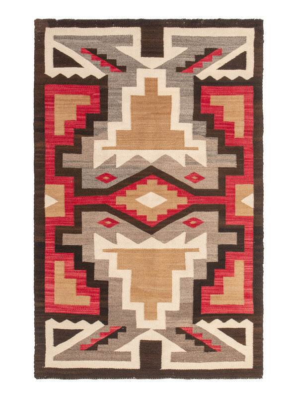finely woven with a flat weave in colors of red, tan, brown, and gray