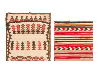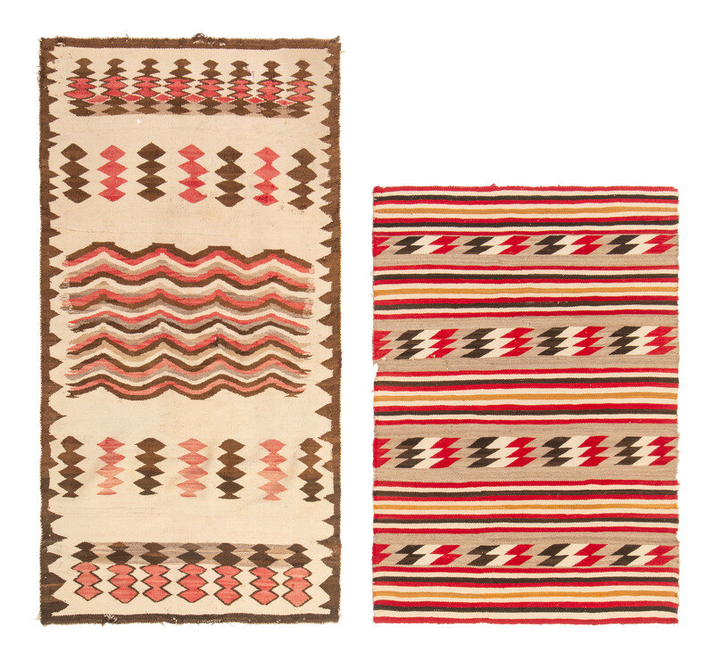 a banded weaving with red, cream, and brown chevrons, 54 x 34 inches
