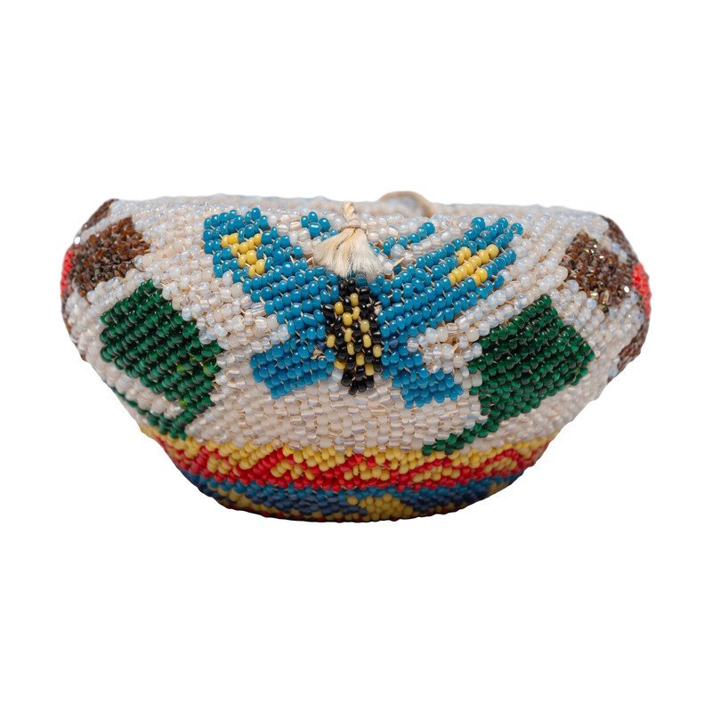 Washoe Beaded Bowl, Butterflies and Flowers
