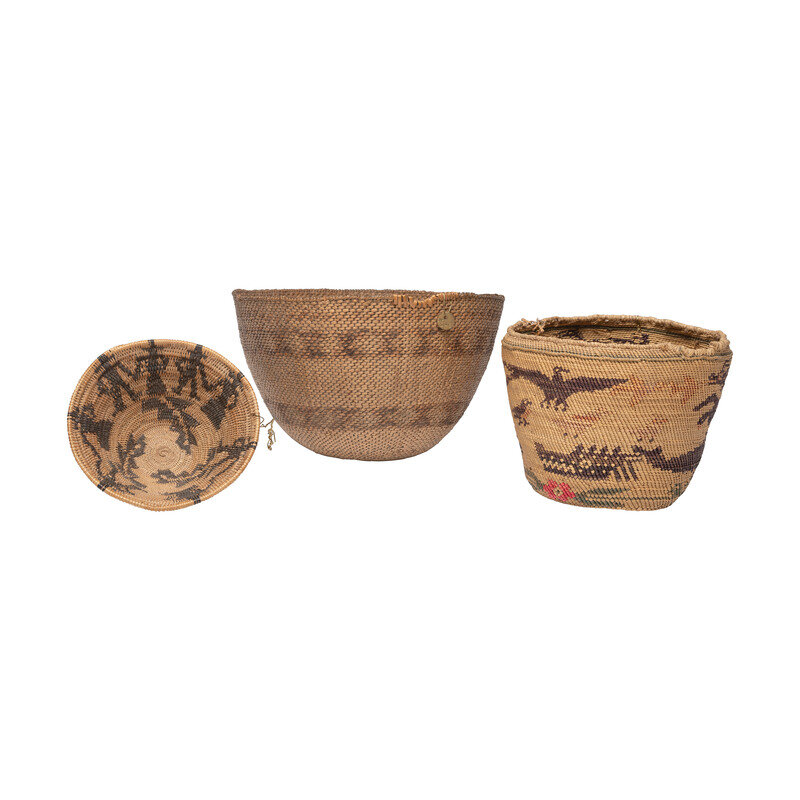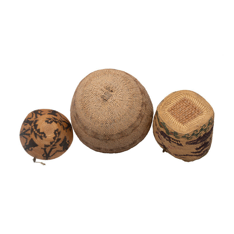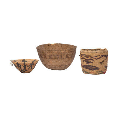AND a Pomo figural basket, height 2-1/2 inches x diameter 5 inches