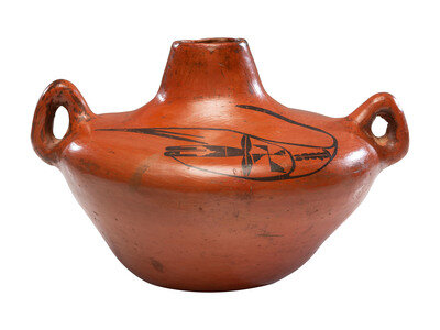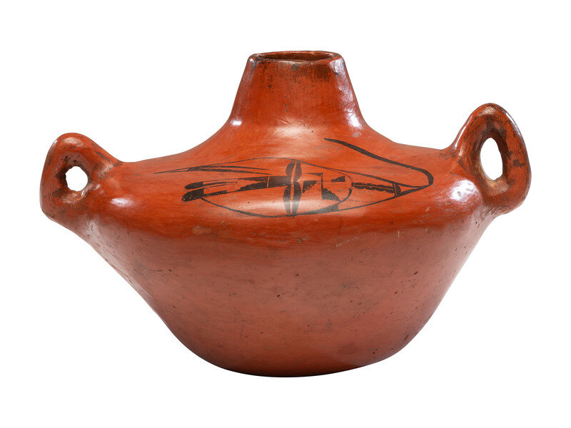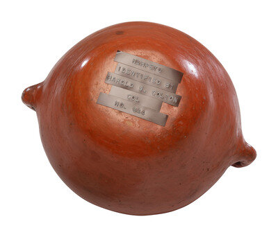 handled jar decorated with winged elements; collection tag on base reads: Nampeyo - Identified by Harold S. Colton - Col No. 644