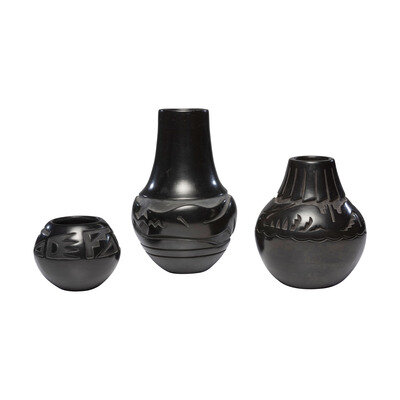 Group of Santa Clara Blackware Pottery