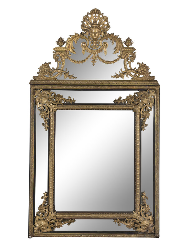 A Louis XIV Style Gilt Bronze Mounted and Ebonized Mirror