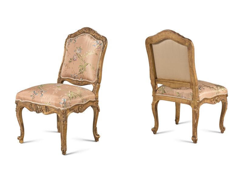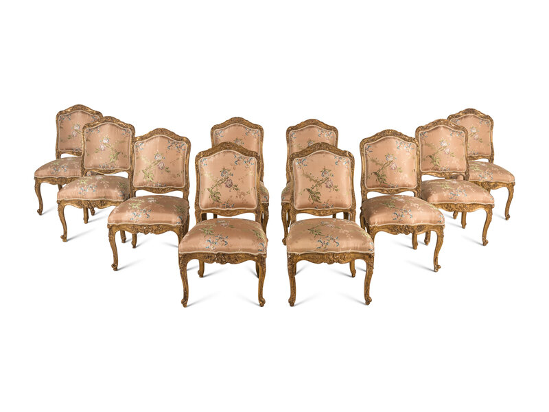 A Set of Ten Régence Style Giltwood Dining Chairs