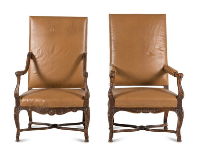 A Matched Pair of Régence Style Walnut Fauteuils