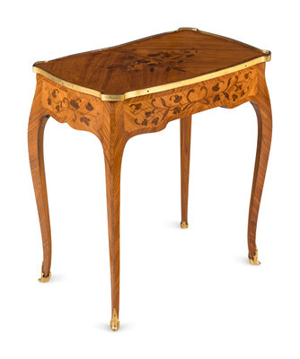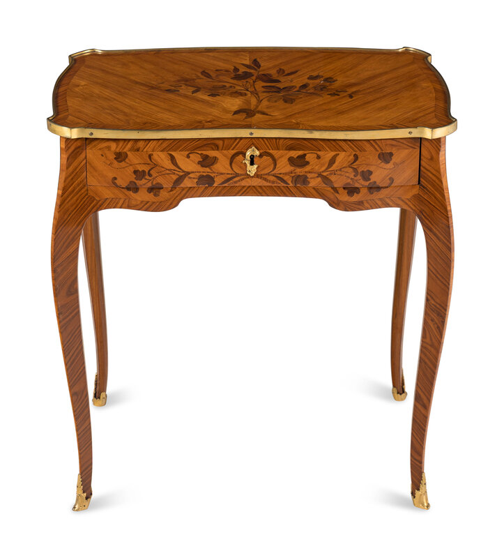 A Louis XV Gilt Bronze Mounted Tulipwood, Kingwood and Floral Marquetry Table à Écrire