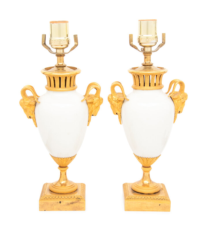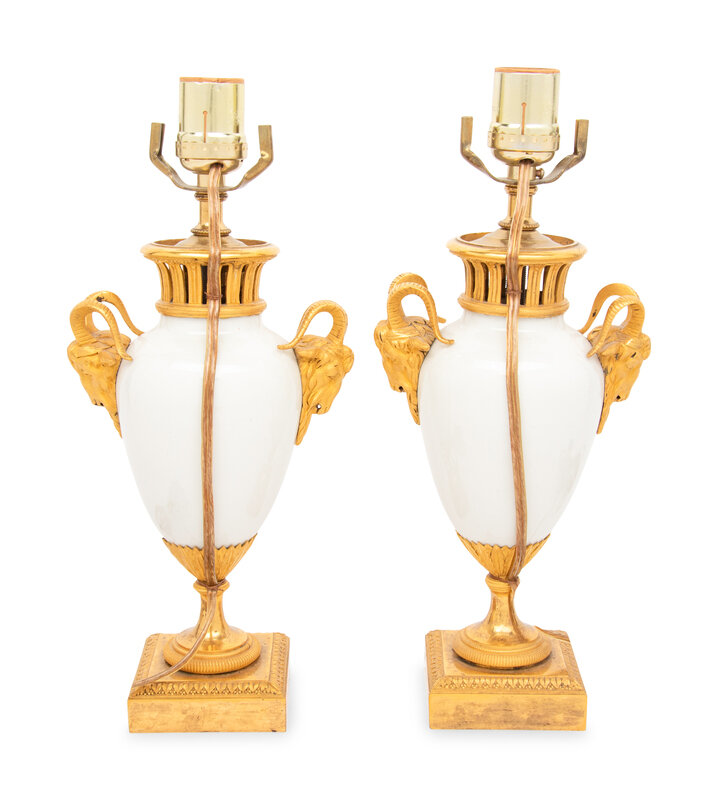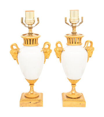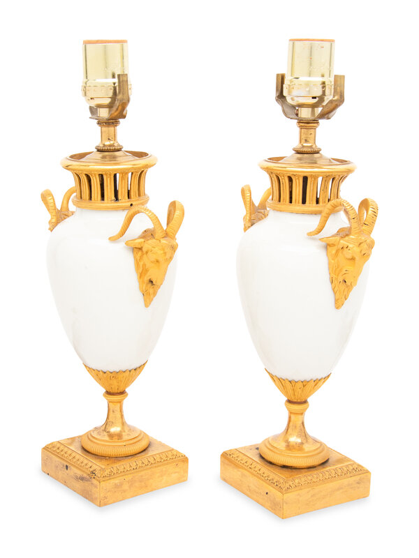 A Pair of Louis XVI Gilt Bronze Mounted Porcelain Vases