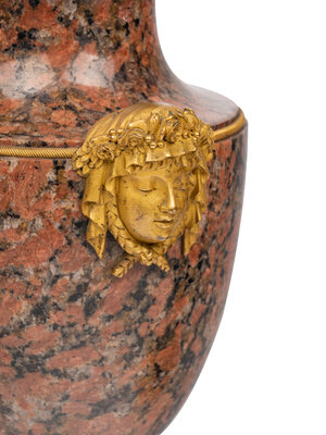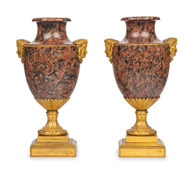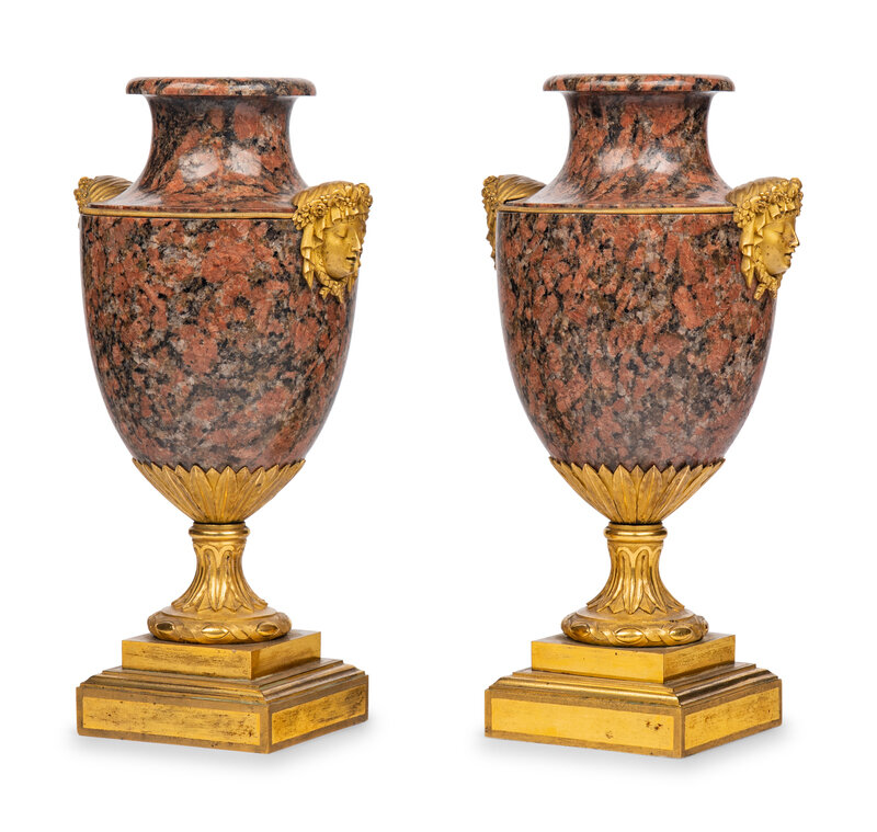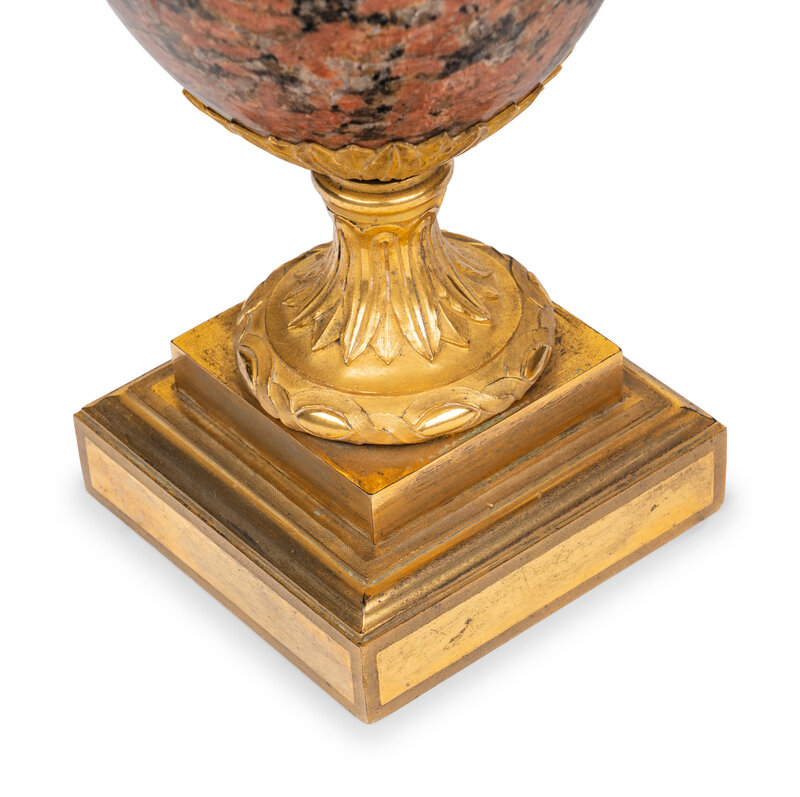 A Pair of Louis XVI Gilt Bronze Mounted Granito Rosso Vases