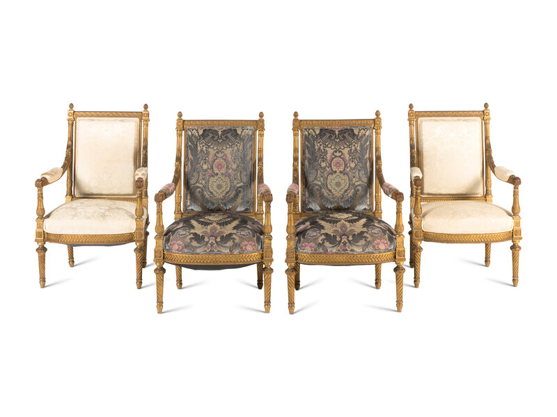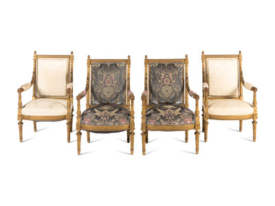 A Set of Four Louis XVI Style Giltwood Fauteuils
