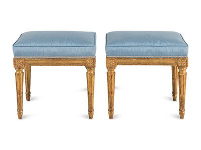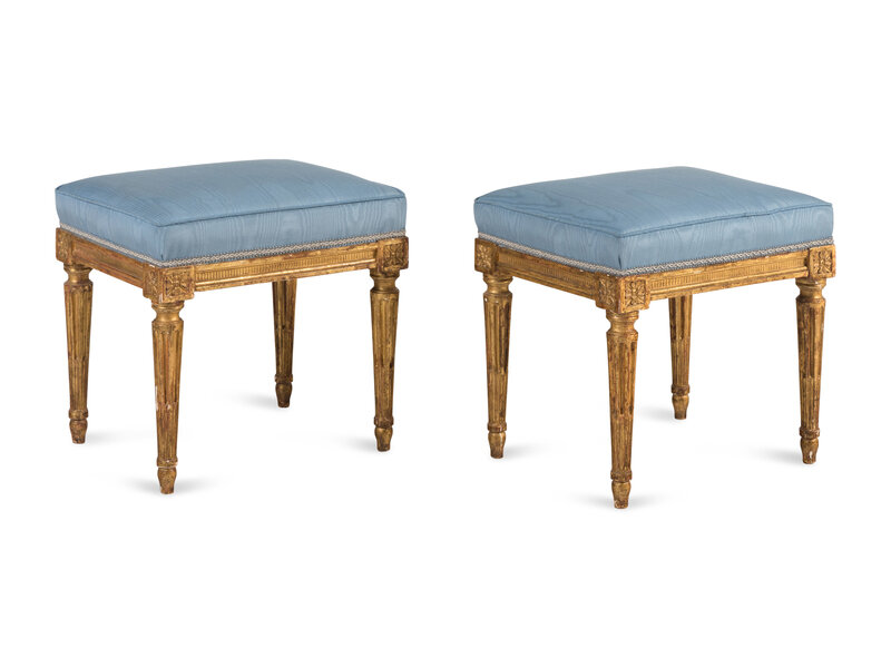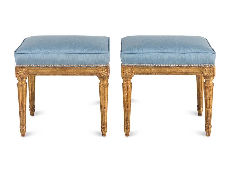 A Pair of Louis XVI Carved Giltwood Tabourets