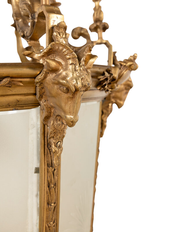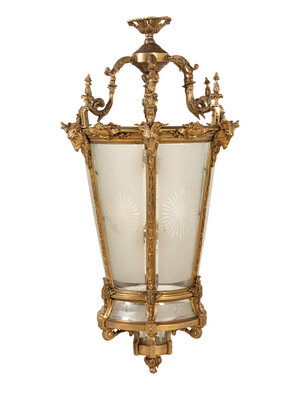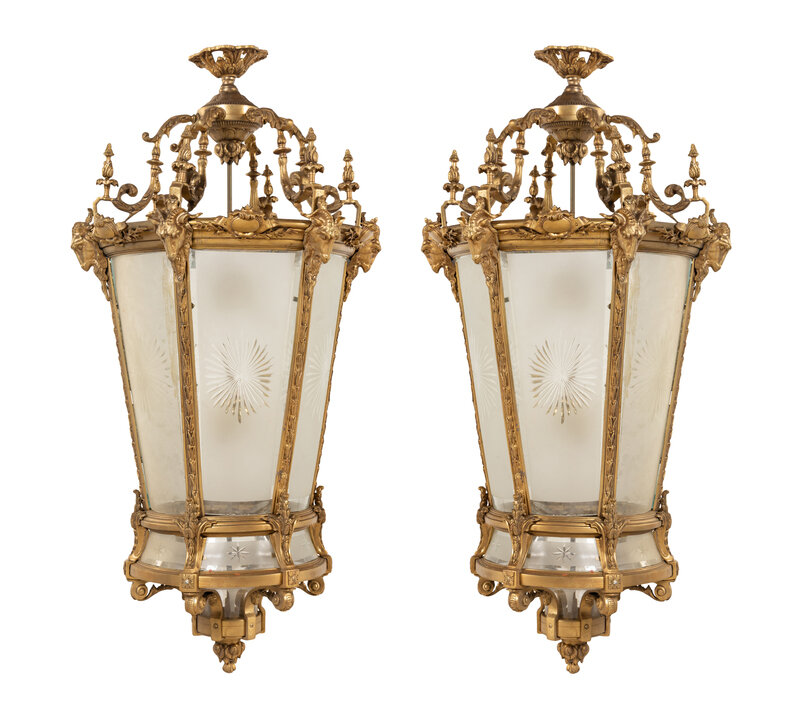 A Pair of Louis XVI Style Gilt Bronze and Frosted Glass Hall Lanterns