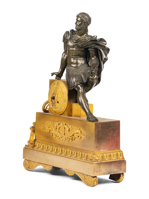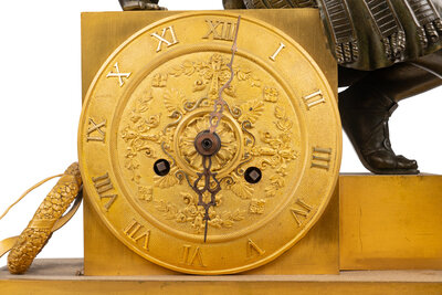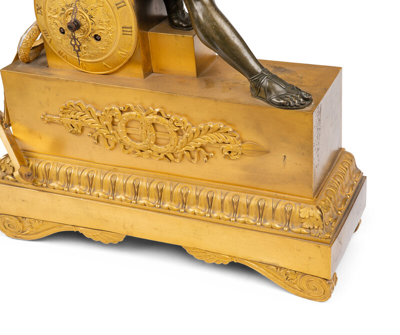 An Empire Gilt and Patinated Bronze Figural Mantel Clock
