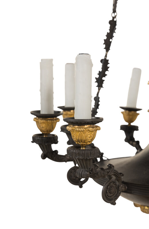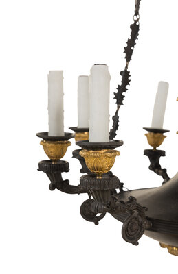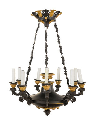 A Restauration Gilt and Patinated Bronze Nine-Light Chandelier