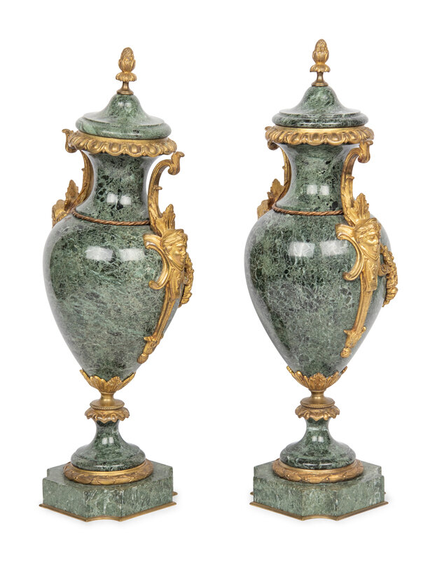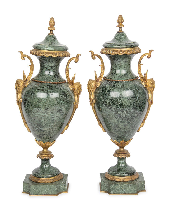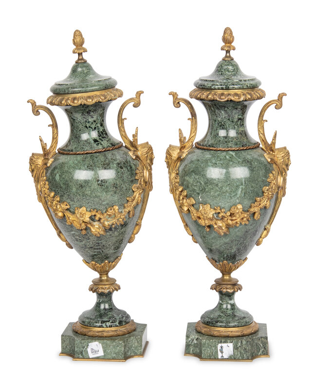 A Pair of French Gilt Bronze Mounted Marble Urns