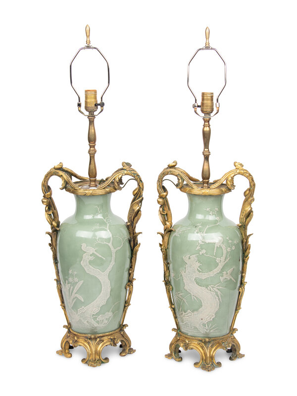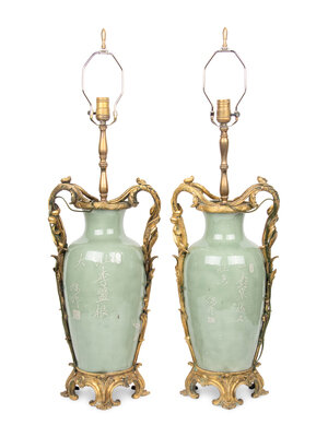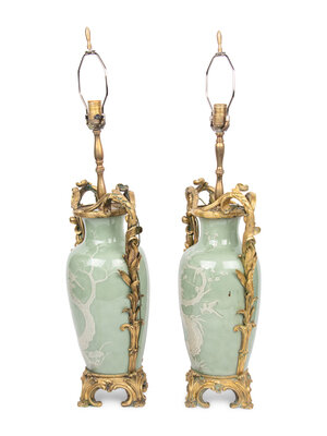 A Pair of French Gilt Bronze Mounted Chinese Celadon Porcelain Vases