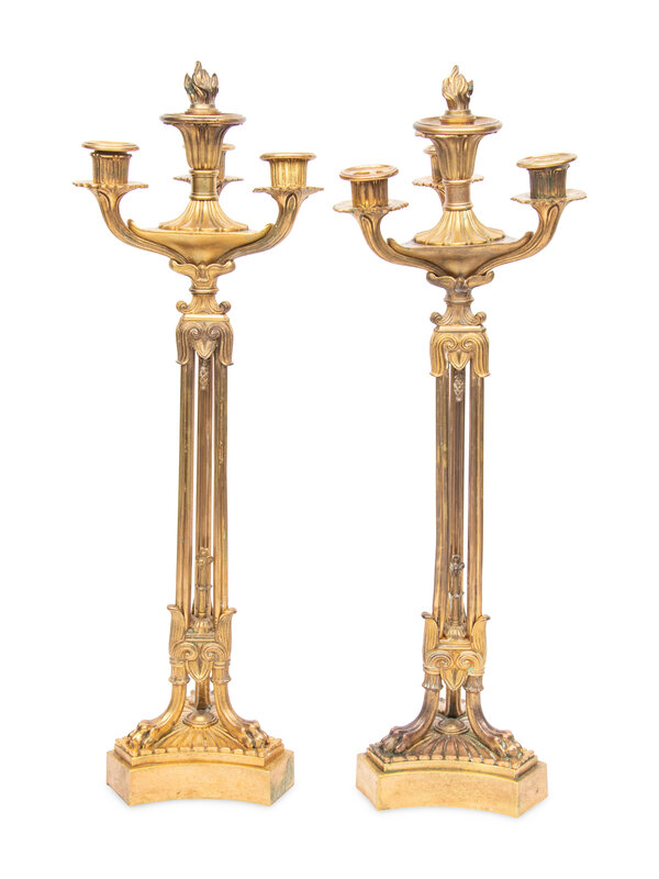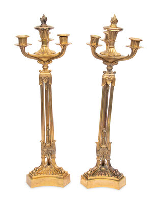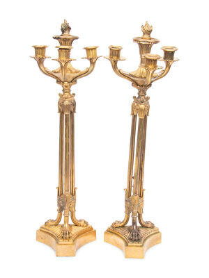 A Pair of French Gilt Bronze Four-Light Candelabra
