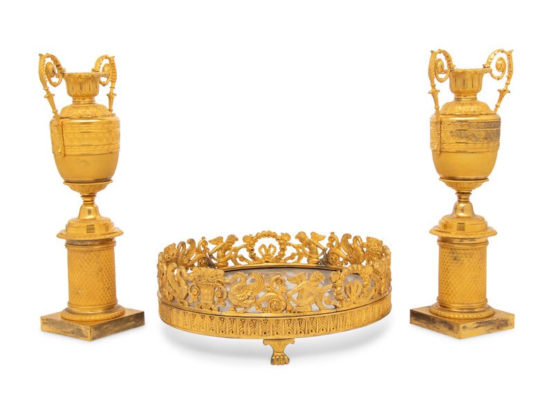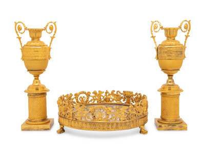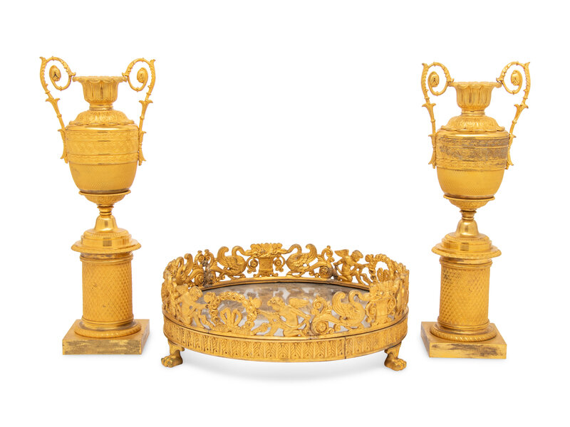 A Louis-Philippe Gilt Bronze Surtout de Table and a Pair of Restauration Gilt Bronze Urns