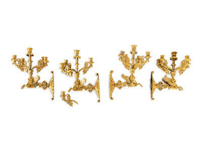 A Set of Four Louis Philippe Gilt Bronze Five-Light Sconces