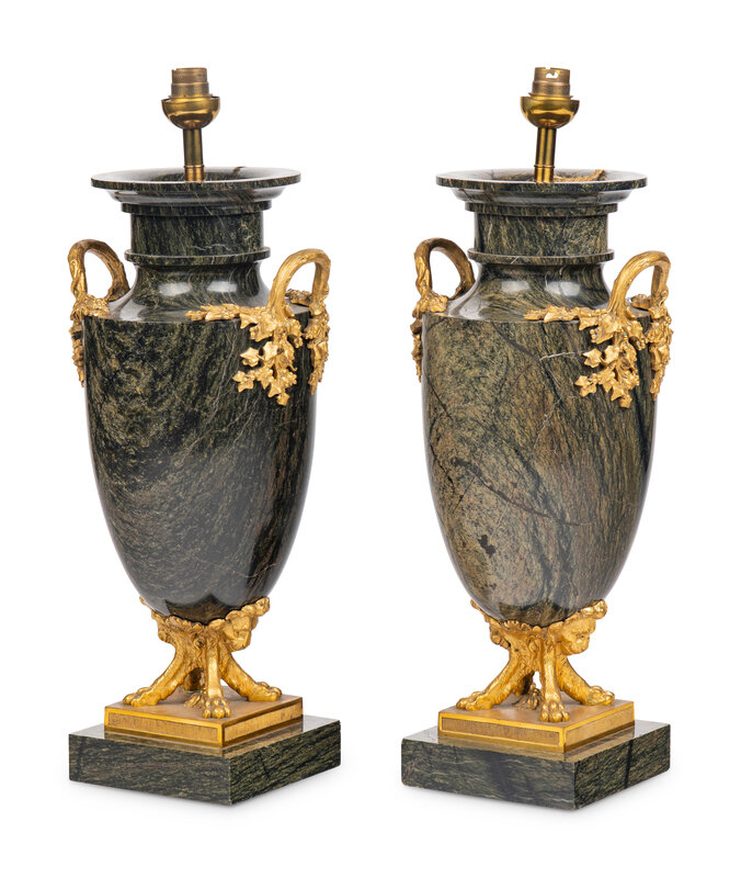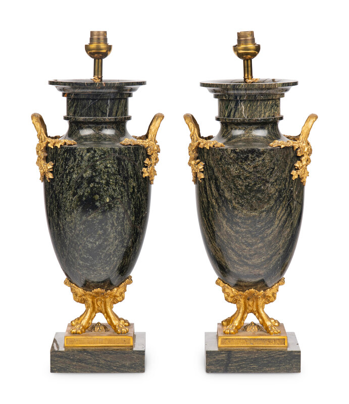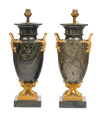 A Pair of French Gilt Bronze Mounted Green Marble Vases