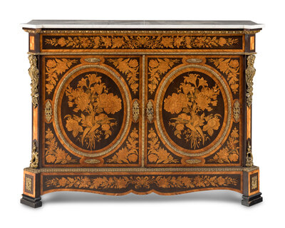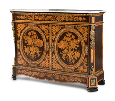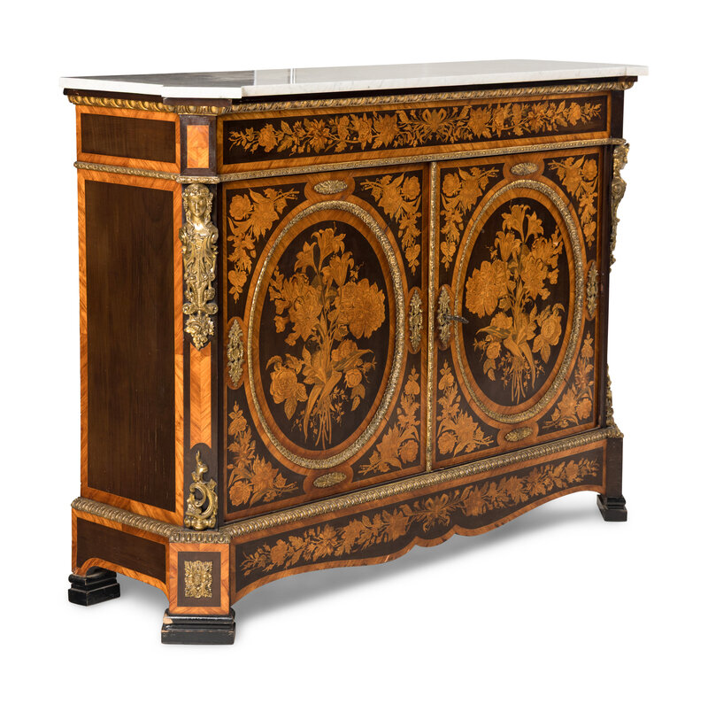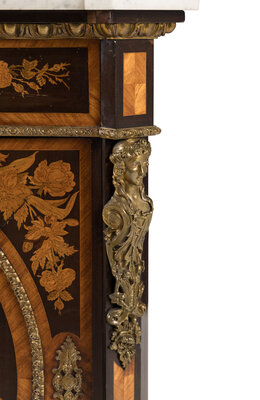 A Napoleon III Gilt Bronze Mounted Marquetry Marble-Top Meuble d'Appui
