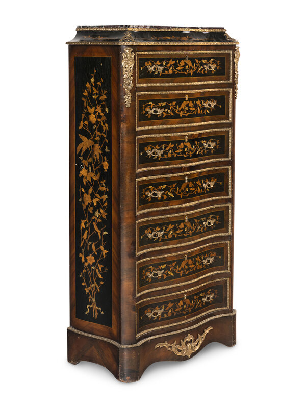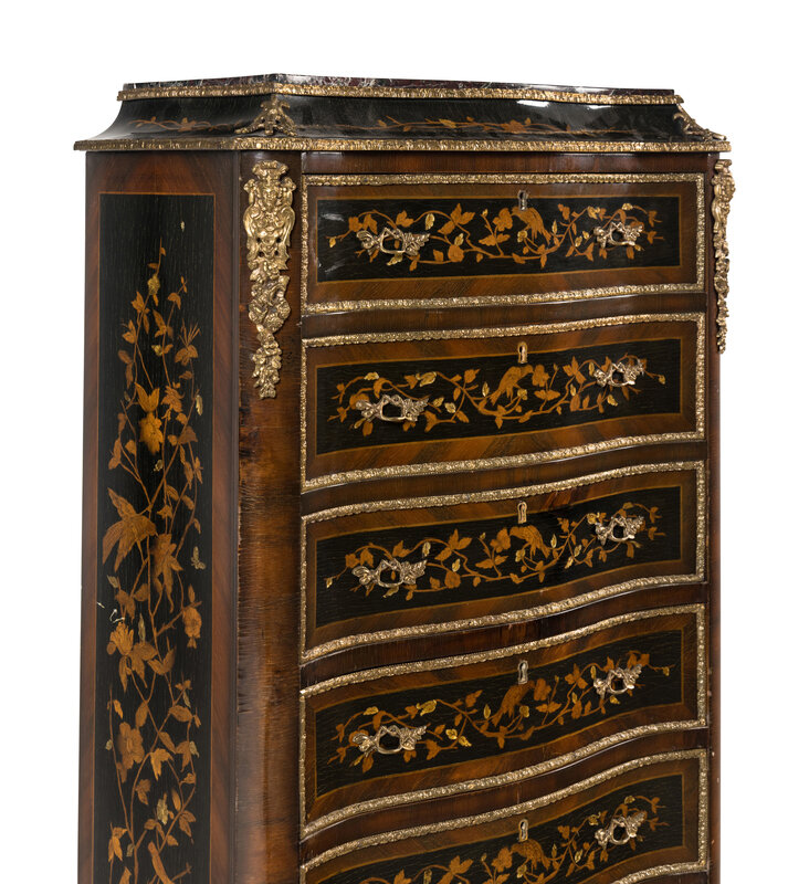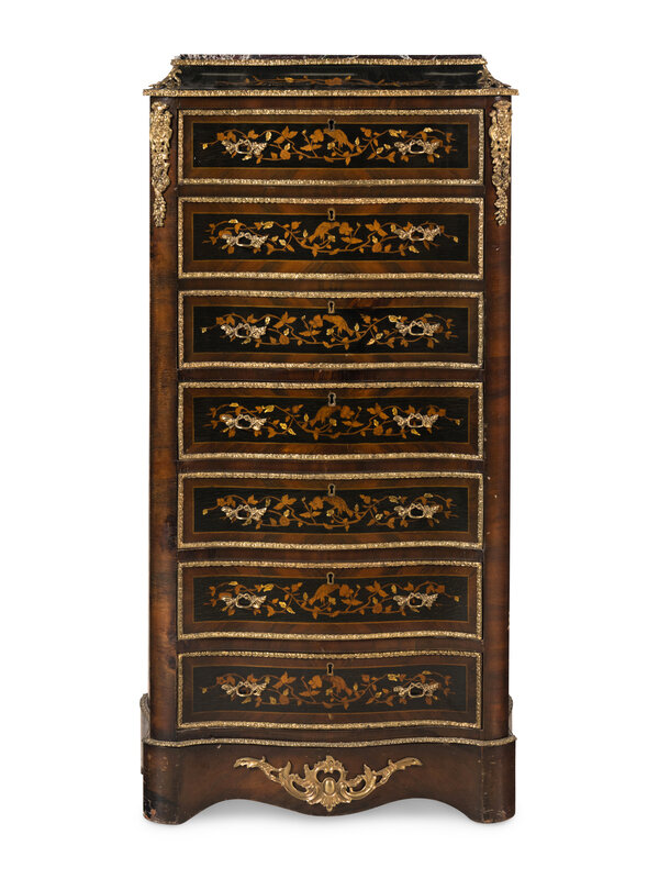 A Napoleon III Marquetry and Marble-Top Secrétaire à Abbatant