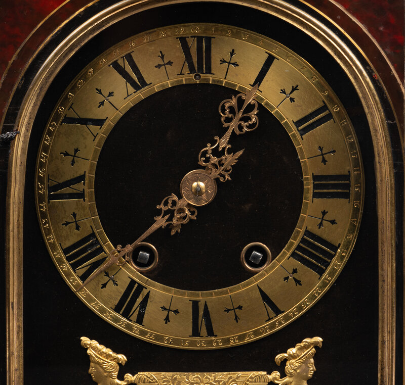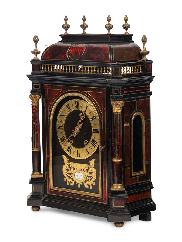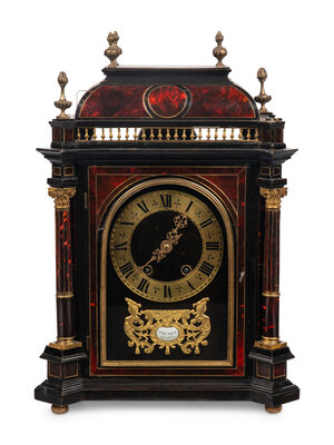 A Napoleon III Gilt Bronze Mounted Tortoiseshell and Ebonized Bracket Clock