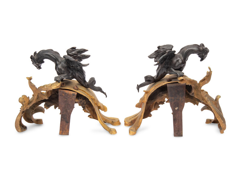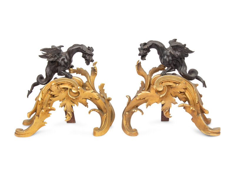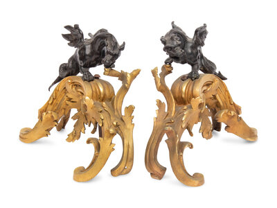 A Pair of French Gilt and Patinated Bronze Chenets
