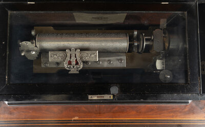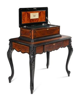 An Ideal Piccolo Music Box on Table by Mermod Frères