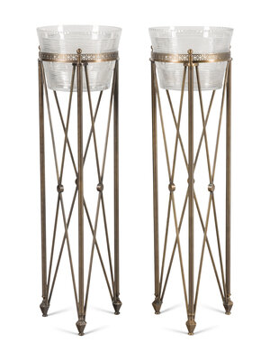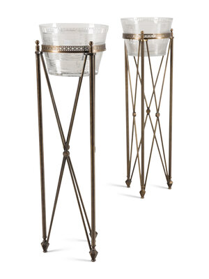 A Pair of Neoclassical Style Cut Glass and Brass Jardinière Stands