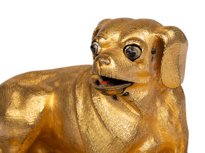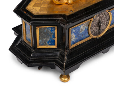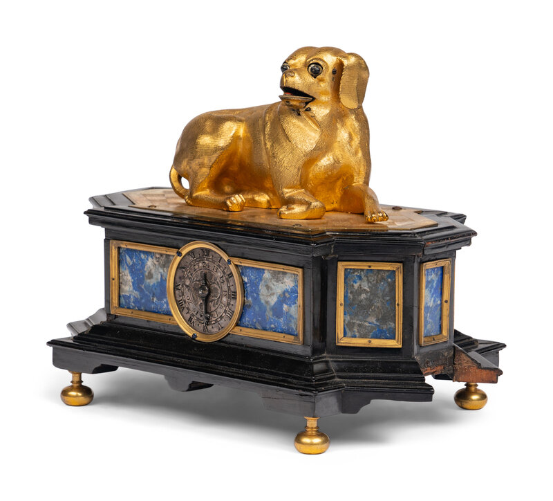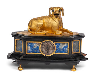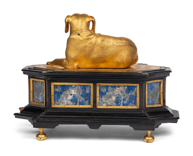 A German Gilt Bronze, Ebonized and Lapis Lazuli-Mounted Automaton with a Reclining Hound