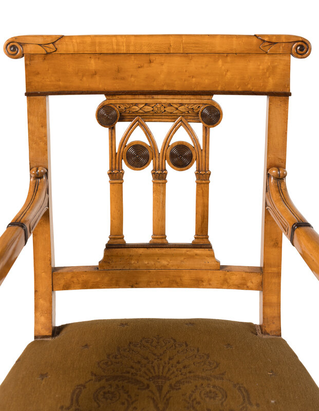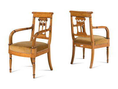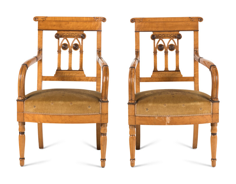 A Pair of North European Part Ebonized Birdseye Maple Armchairs