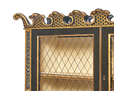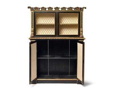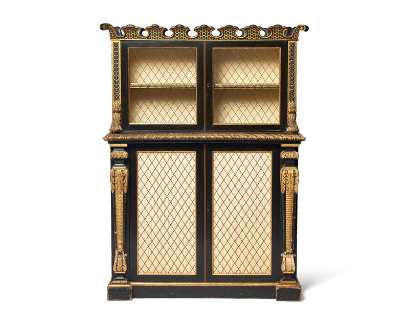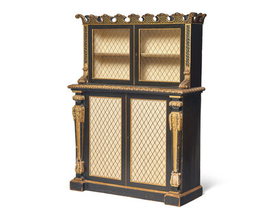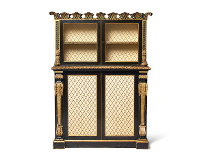 A Continental Ebonized and Parcel Gilt Bookcase