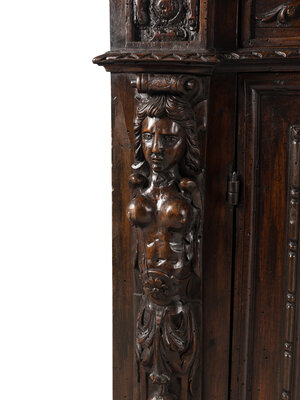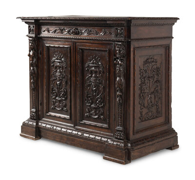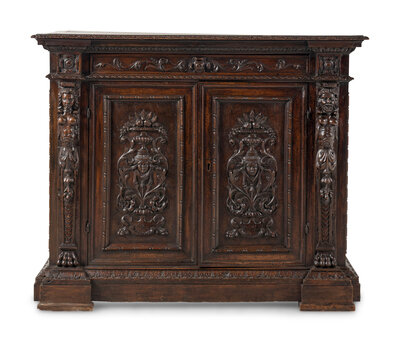 An Italian Baroque Carved Walnut Cabinet