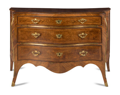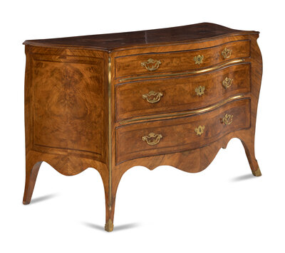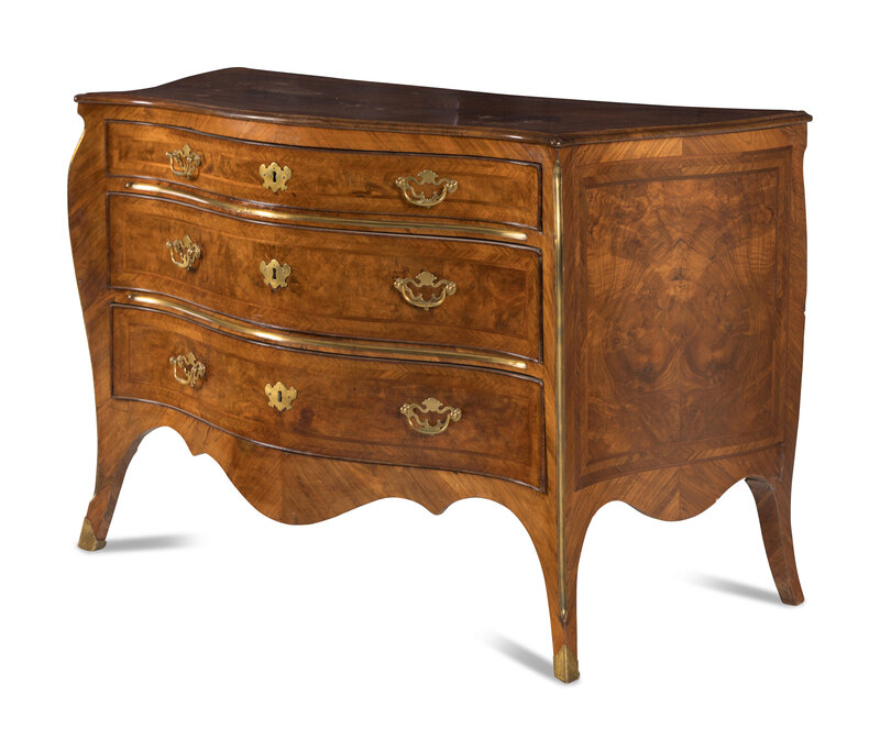 An Italian Gilt Bronze Mounted Serpentine Walnut Commode