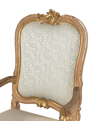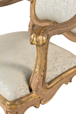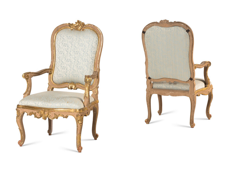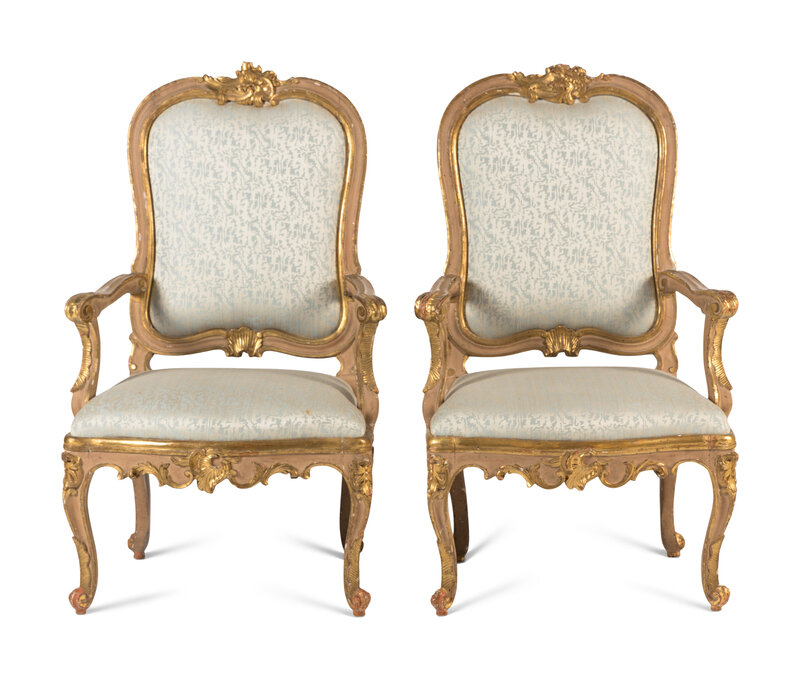 A Pair of Italian Rococo Painted and Parcel Gilt Armchairs