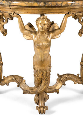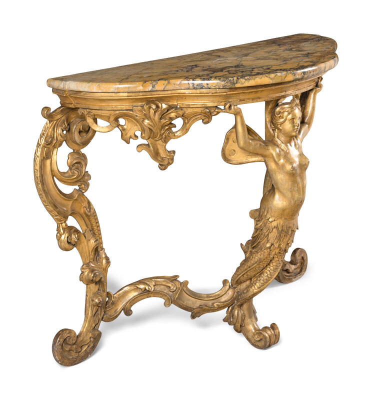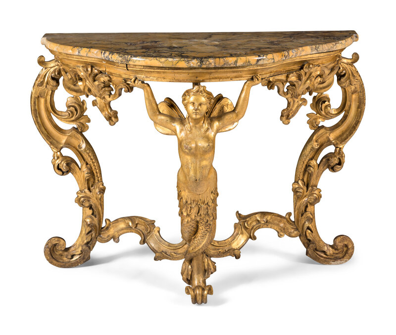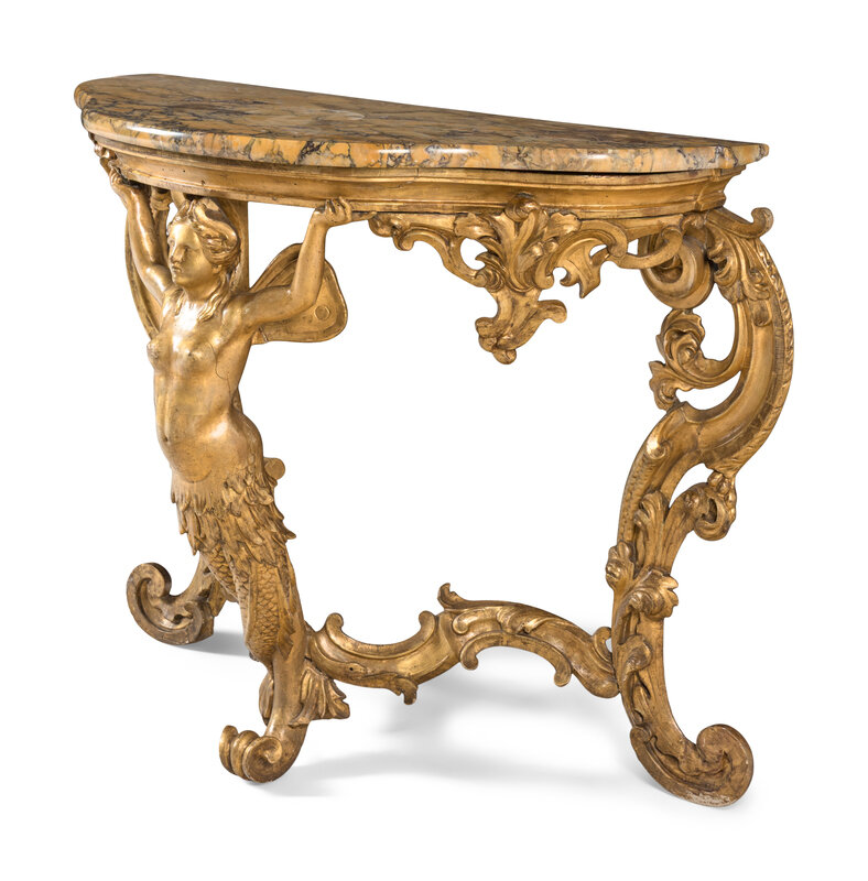 An Italian Rococo Style Giltwood and Giallo Antico Marble-Top Console Table