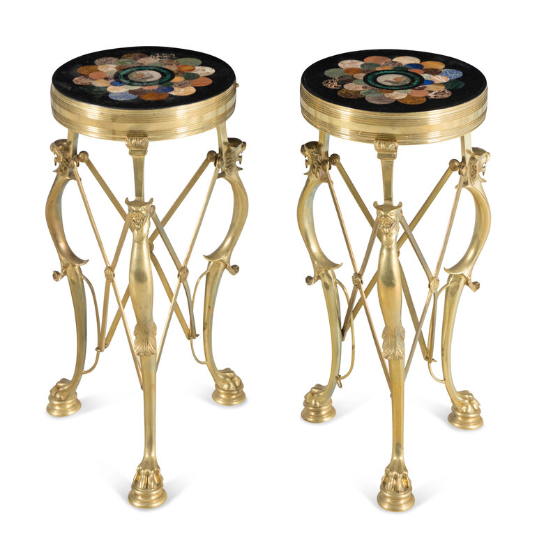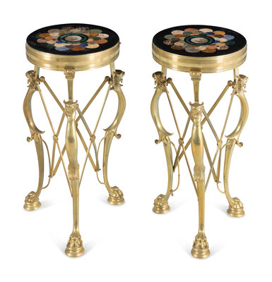 A Pair of Gilt Bronze and Specimen Marble Occasional Tables