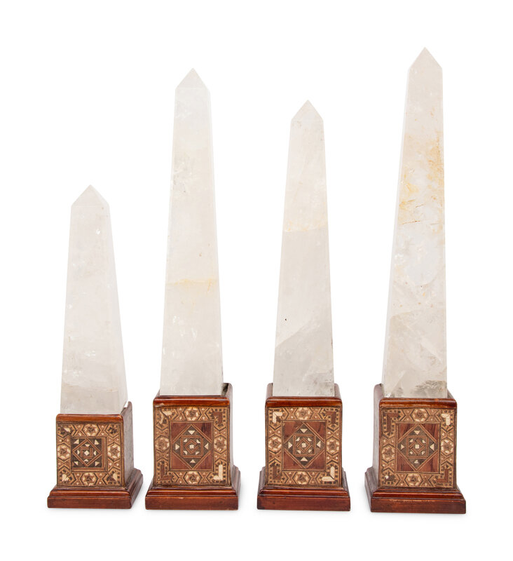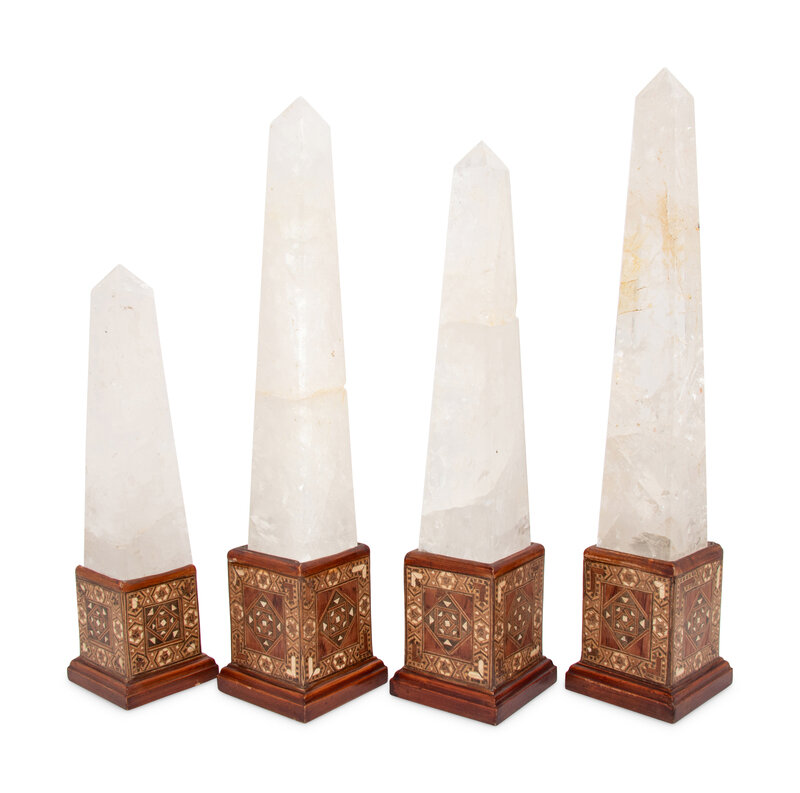 A Group of Four Rock Crystal and Marquetry Obelisks