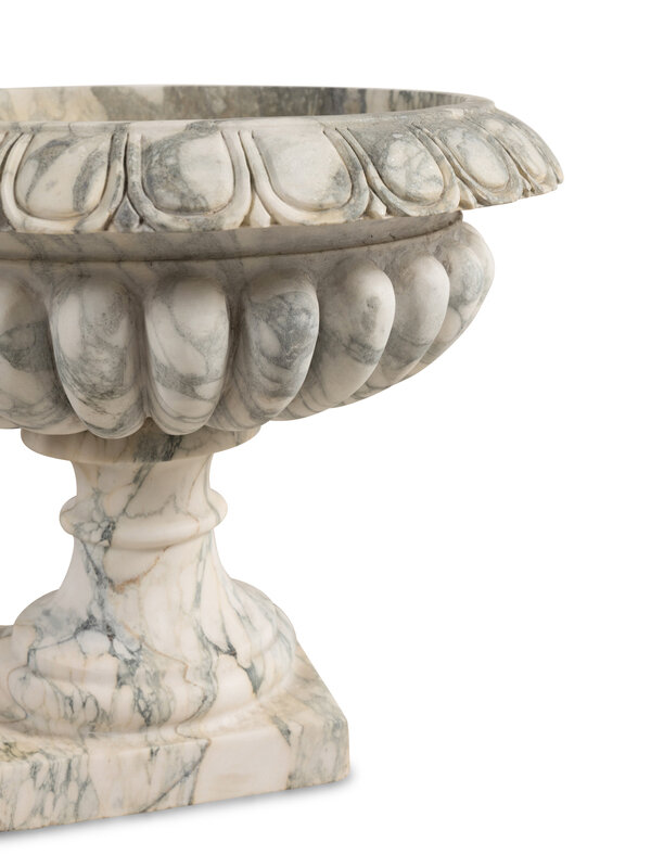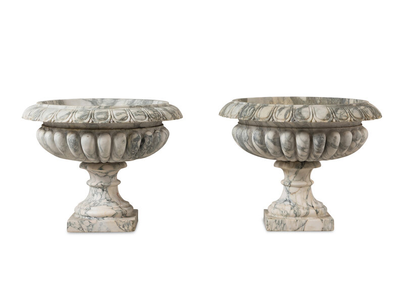 A Pair of Neoclassical Style White and Grey Veined Marble Jardinières