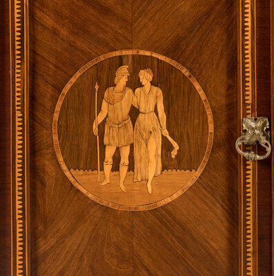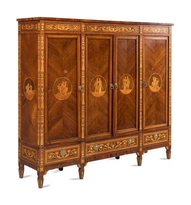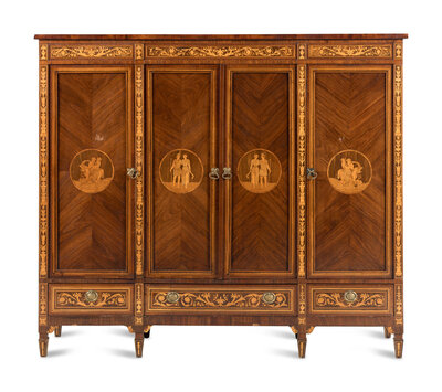 An Italian Neoclassical Style Bookmatch Veneered and Marquetry Cabinet