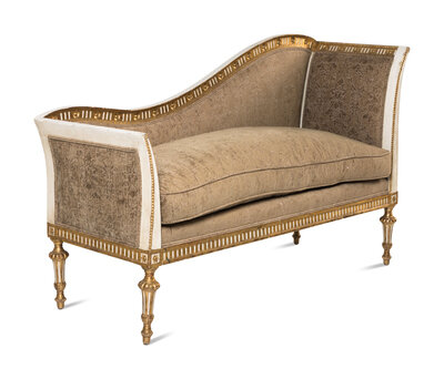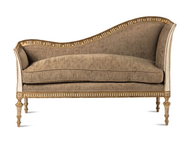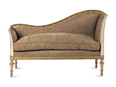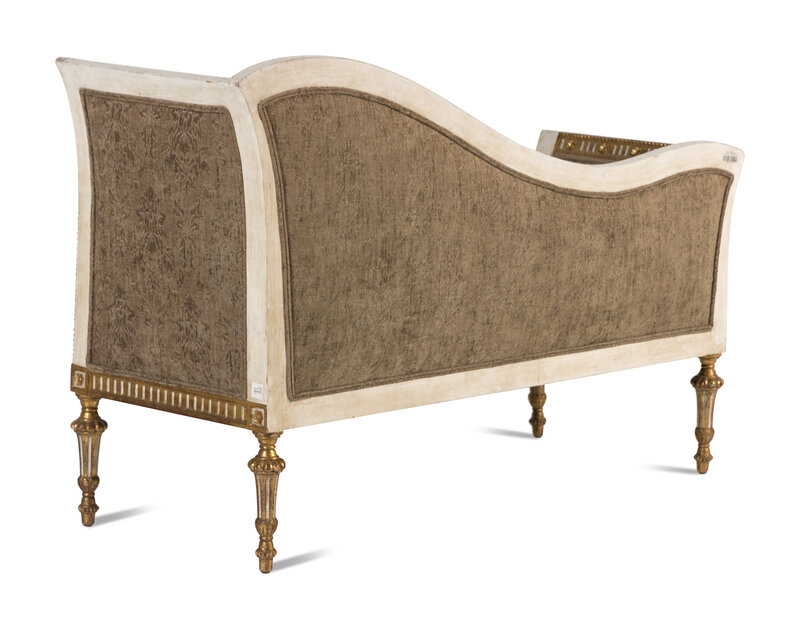 A Neoclassical Style Painted and Parcel Gilt Settee