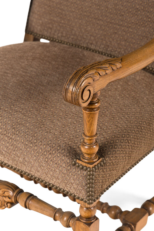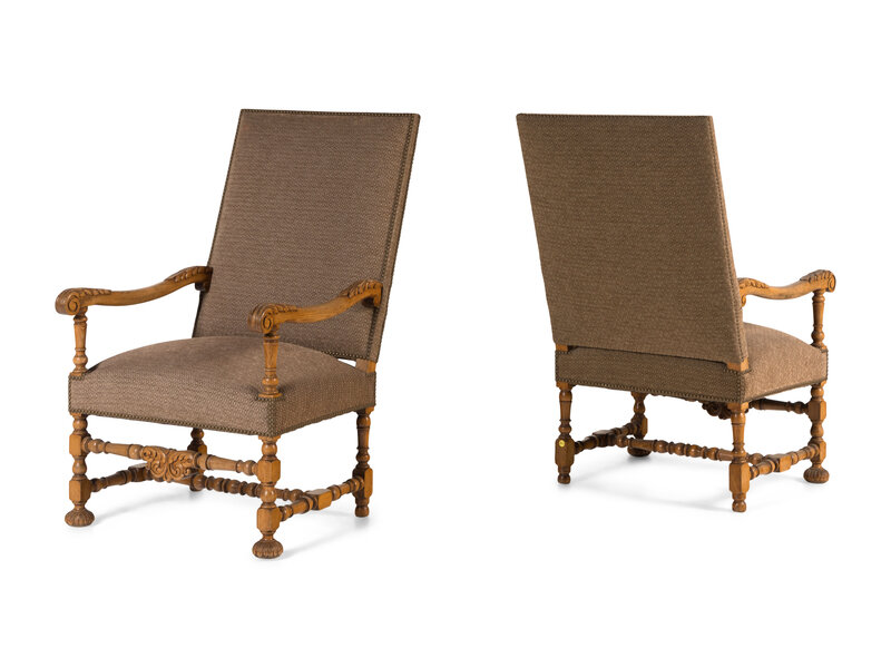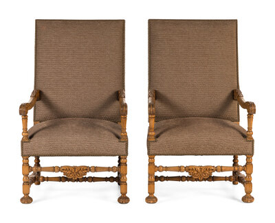 A Pair of Continental Baroque Style Carved Walnut Armchairs